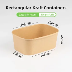 - Compostable Rectangular Paper Bowls 750ml – Custom Printed Eco-friendly Paper Bowls– 750ml compostable rectangular paper bowls suitable for hot and cold food applications, with custom printing and bulk packaging options